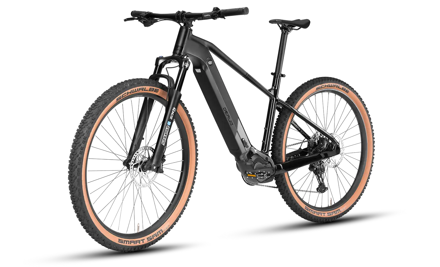 Die Kombination aus Schwalbe Smart Sam 29x2.6-Reifen (4,8 mm Profil) und fein abgestimmter Gewichtsverteilung macht den Unterschied: Ob nasser Waldboden, loser Schotter oder steile Wiesenpfade – die Traktion bleibt konstant. Die breite Auflagefläche sorgt für satten Grip, während das Chassis durch seine Balance das Durchdrehen verhindert. In der Praxis heißt das: Weniger Energieverlust, mehr Effizienz – und ein Fahrgefühl, als wäre das Bike mit dem Untergrund verwachsen.