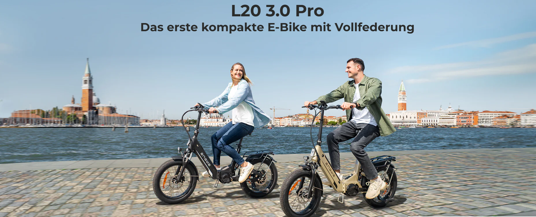 Erlebe das erste kompakte E-Bike mit Vollfederung – perfekt für Stadtstraßen und darüber hinaus.