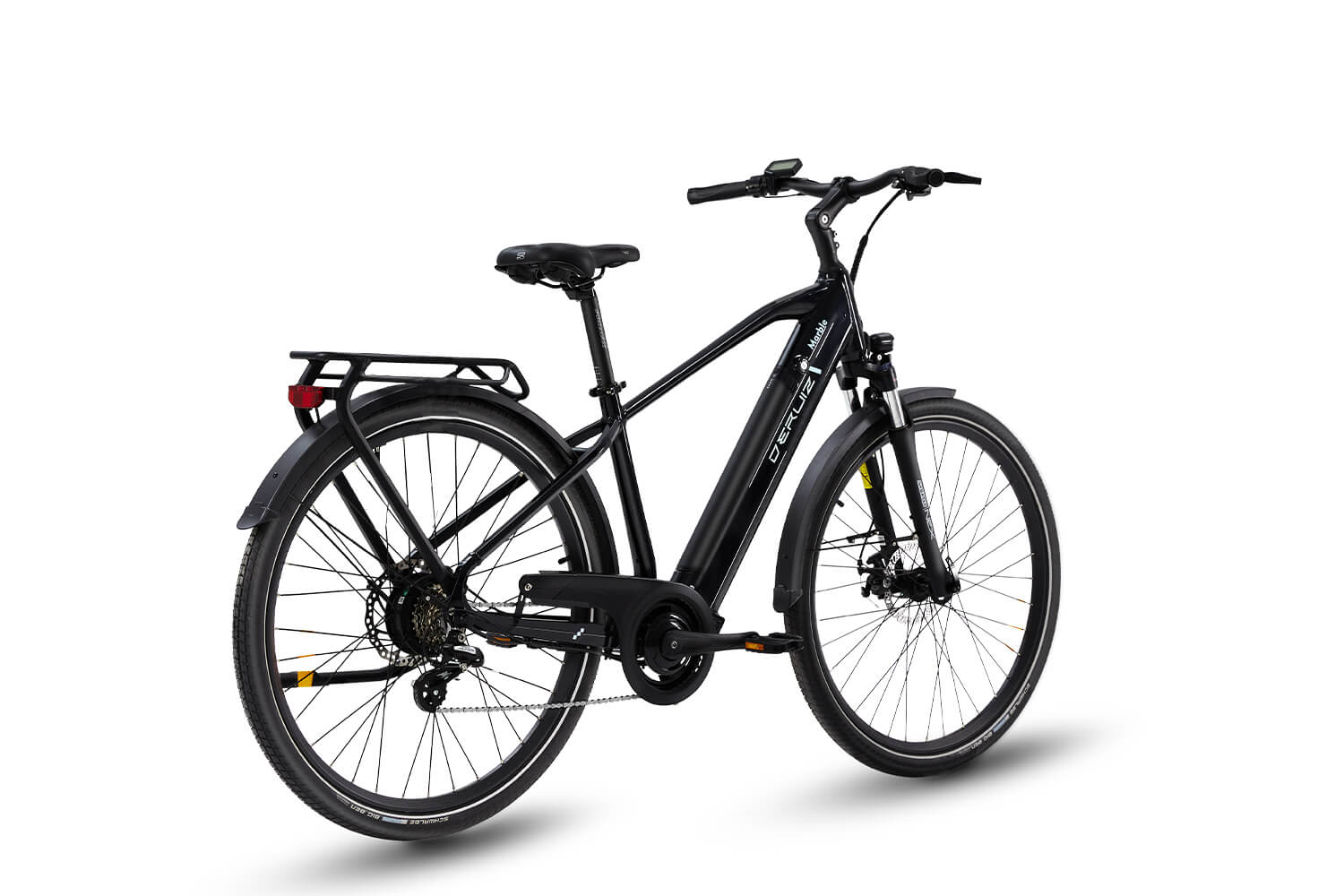 Auch ein Nabenantrieb kann stark sein. Der Deruiz-Hinterradantrieb verfügt über ein beeindruckendes Drehmoment von 55 Nm. Die meisten Deruiz-E-Bikes sind mit einem 48-Volt-System ausgestattet, das Ihnen ausreichend Energie zur Verfügung stellt, um Hügel zu überwinden und mühelos dahin zu gleiten.